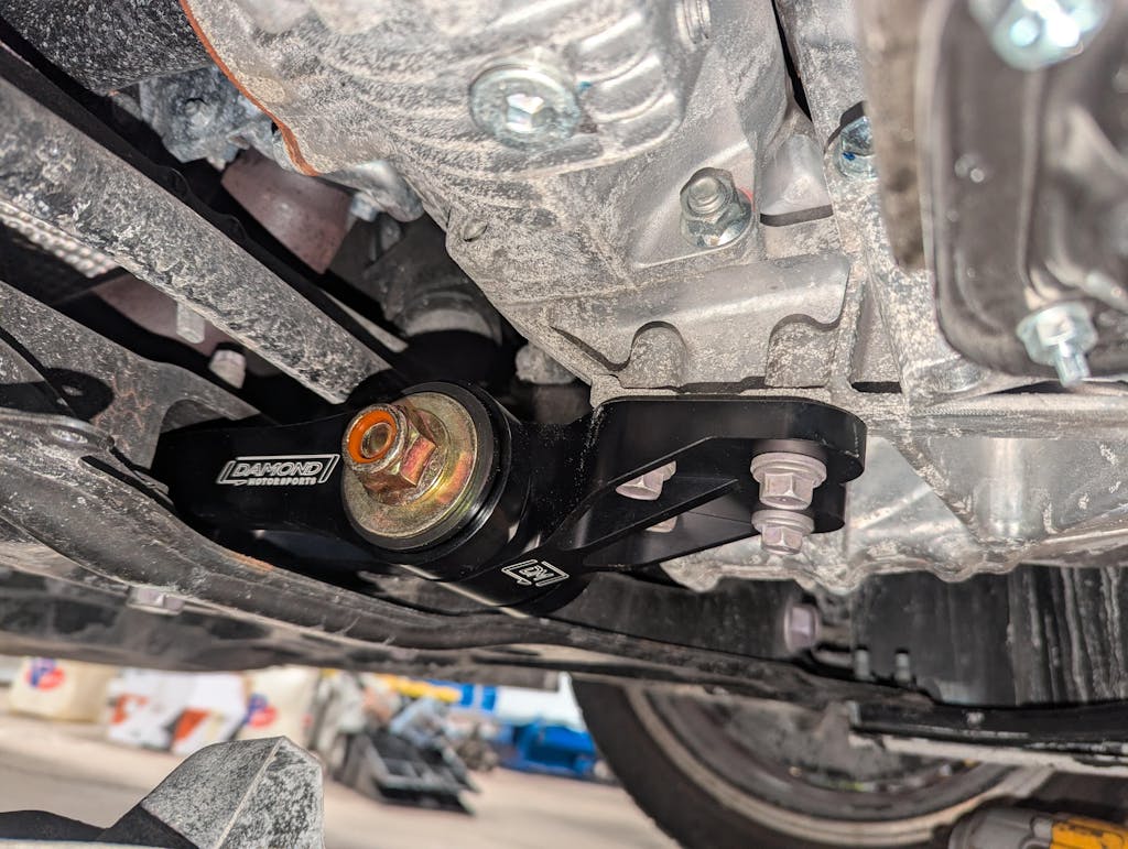 If you're seeking a rear motor mount, aka lower pitch mount, that will drastically reduce engine movement, improve shifting and clutch pedal feel, and reduce wheel hop, then look no further. The Damond Motorsports GR RMM is the ultimate solution.